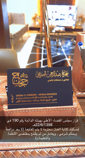 مكاتب محاماة في الخرج – شركة المحامي والموثق حجاج عبدالرحمن الضويحي للمحاماه والأستشارات القانونيه. تعرف على العنوان ورقم الهاتف وساعات العمل والتقييم والآراء قبل التواصل أو الزيارة.