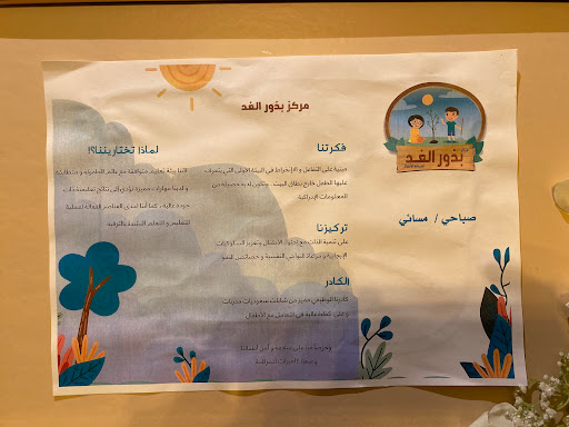 حضانات في السعودية – مركز بذور الغد لضيافة الاطفال. تعرف على العنوان ورقم الهاتف وساعات العمل والتقييم والآراء قبل التواصل أو الزيارة.